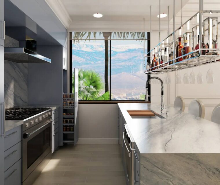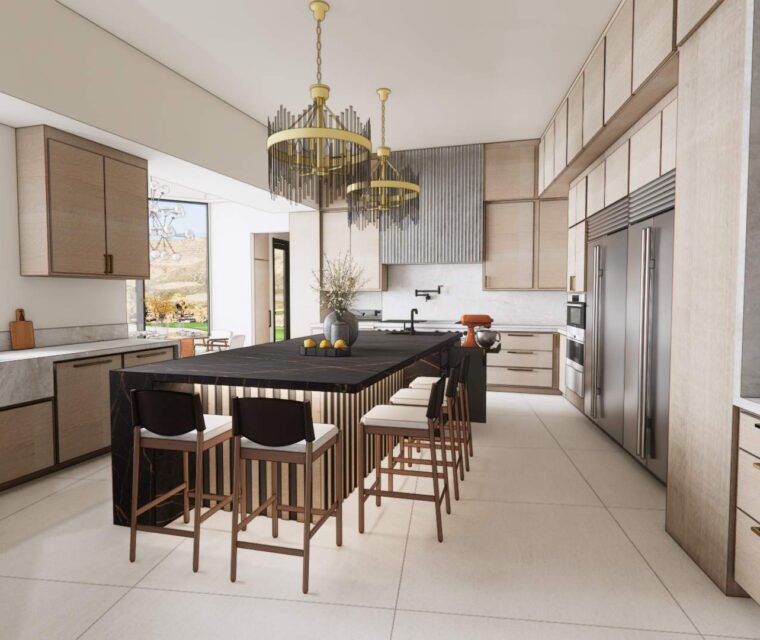 This vast estate, encompassing five suites and generous entertainment spaces, was designed for our well-traveled clients who wanted to bring a touch of Tulum and the Italian countryside back to Las Vegas.