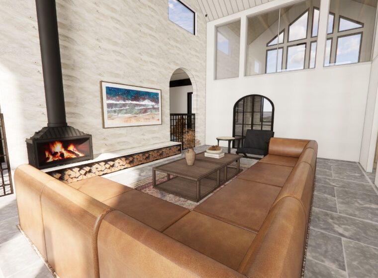 The entire house is enveloped in creamy Roman clay, adding subtle depth and texture to the walls.